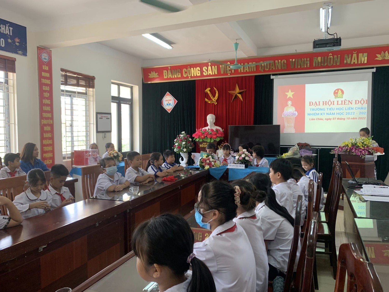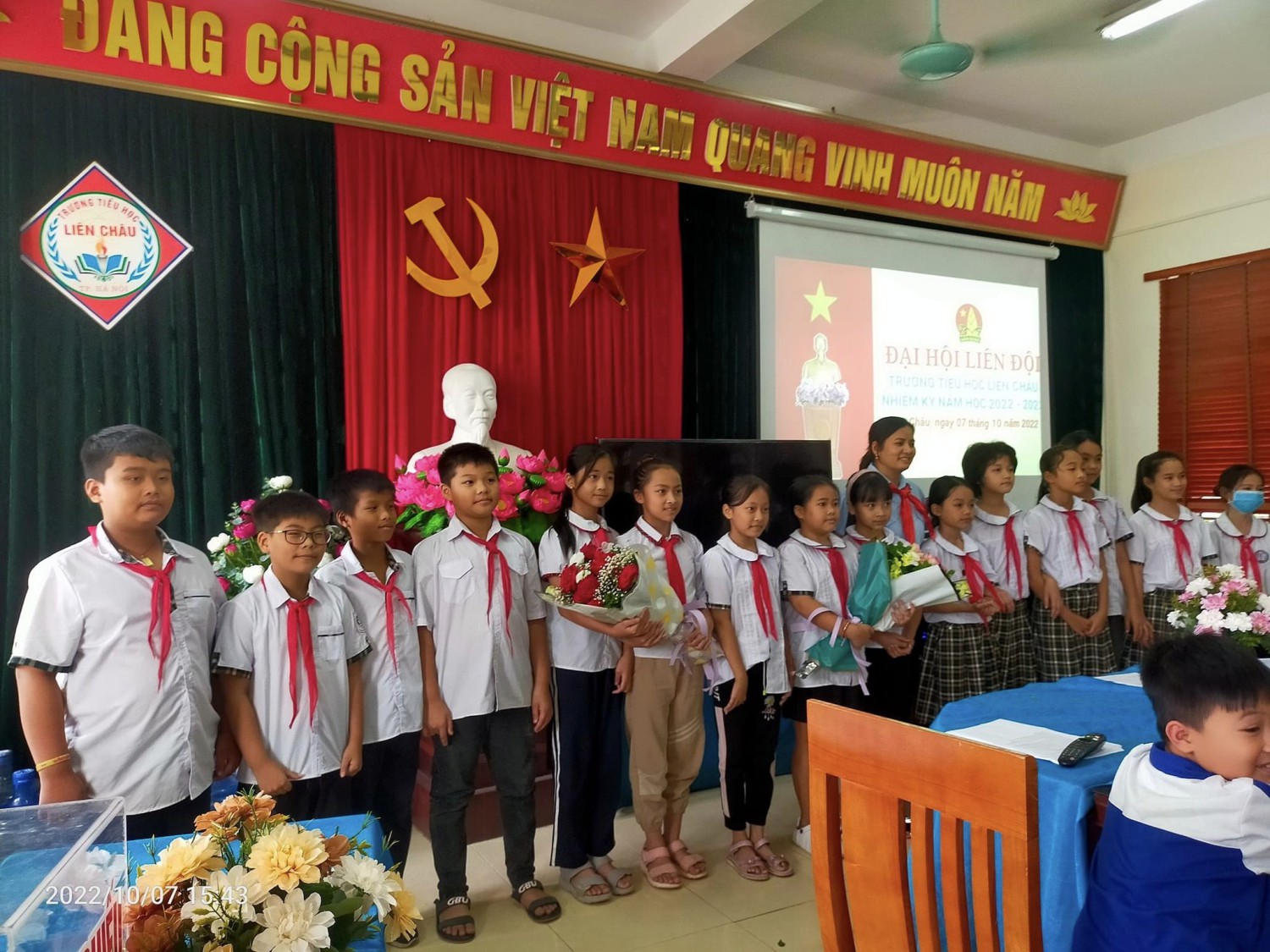 Chiều ngày 7/10/2022, Liên đội trường Tiểu học Liên Châu đã long trọng tổ chức Đại hội Liên đội nhiệm kỳ năm học 2022 -2023. Tham gia buổi lễ có sự tham dự của cô Hoàng Thị Minh - Bí thư chi bộ, hiệu trưởng nhà trường, các thầy cô trong chi đoàn trường và cô giáo TPT Đội cùng các bạn đội viên, nhi đồng tiêu biểu của 20 chi đội, chi sao. Đại hội đã diễn ra thành công tốt đẹp và bầu được 15 đội viên trong BCH Liên đội.